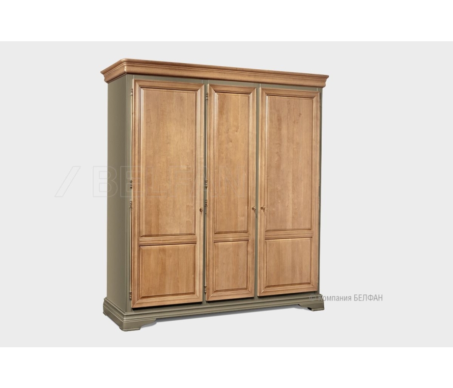 Трехдверный шкаф для одежды «Оливия» — это сочетание красоты и функциональности. Фигурные цоколи и высокий многослойный карниз, глубокое эмалевое крашение и натуральные оттенки, контрастная патина и червоточины – всё это делает шкаф «Оливия» уникальным предметом интерьера. Его удобство нисколько не уступает красоте. За тремя дверьми расположились два отделения: со штангой для хранения длинных платьев, брюк и рубашек; и отделение с полками, где можно комфортно разместить самые разные вещи. Особенности трехдверного шкафа для одежды «Оливия»: ? Шкаф изготовлен из массива и шпона ольхи. ? Изюминку дизайну шкафа придает сочетание глубокого эмалевого крашения и натурального оттенка. ? Продуманное внутреннее наполнение шкафа позволяет аккуратно распределить все вещи и поддерживать порядок в нем. ? Все двери закрываются на ключ. ? Экологичное покрытие шкафа - окрашено краской и лаком на водной основе. Схема шкафа: Видеообзор спальни Оливия
