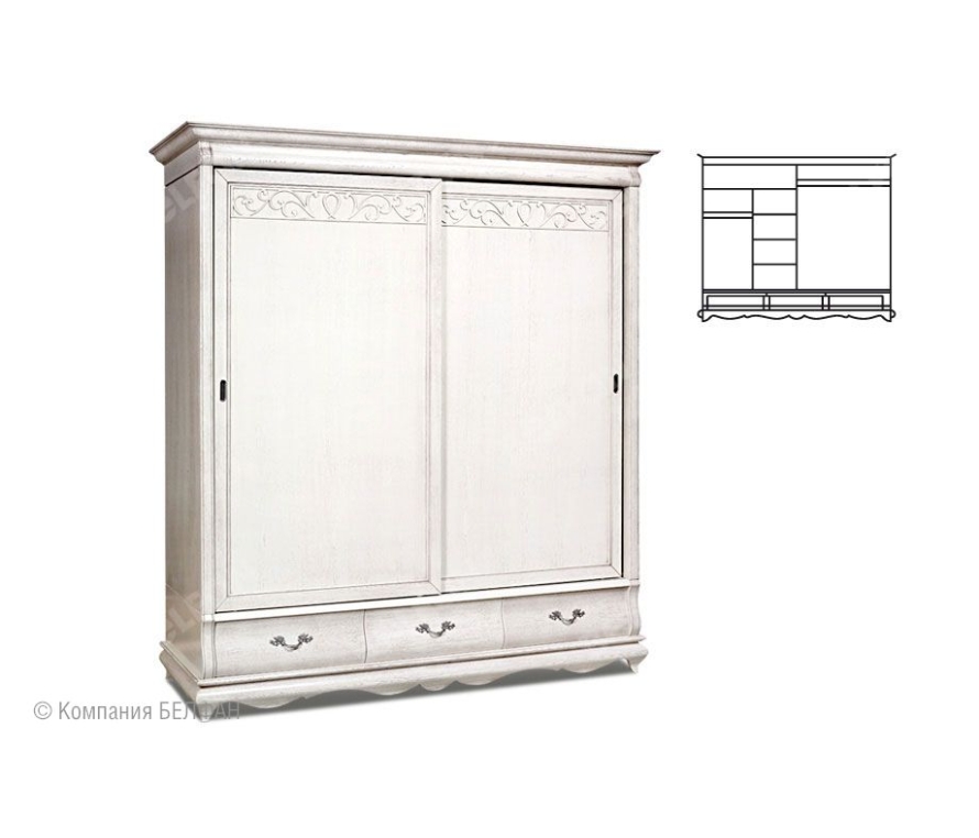 Компактный, но очень вместительный шкаф-купе для одежды «Оскар» (Oskar) является оптимальным вариантом для спальни. Изделие отличается изогнутым цоколем, декором резных элементов ручной работы, необычными цветовыми решениями и фурнитурой, отливающей золотом и серебром, что в целом характерно для мебели, выполненной в классическом стиле. В качестве материала выбран массив дуба, что делает мебель надежной и долговечной. Особенности двухдверного шкафа-купе для одежды «Оскар»: ? Экономит место в помещении, благодаря раздвижным дверям. ? Двери-купе бесшумные (при движении нет вибрации). Механизм - производства Германии. ? Универсальный и очень вместительный благодаря продуманной внутренней компоновке. ? Пыль не попадает в шкаф из-за ворсистого уплотнителя на дверках. ? Ящики с направляющими (пр-ва Австрии) полного выдвижения и бесшумного закрывания. ? Гнутые фасады ящиков и фигурный цоколь в виде «волны». ? Накладная декоративная резьба на дверках. ? Итальянская лицевая фурнитура Bosetti – Marella в золотом крашении. ? Экологичное покрытие - окрашено краской и лаком на водной основе. Обратите внимание, что данная мебель является крупногабаритным изделием. При заносе в помещение, лифт, дверные проемы, лестницы на второй этаж и другие узкие места могут возникнуть сложности. Обязательно проконсультируйтесь с продавцом. Схема шкафа-купе «Оскар»: