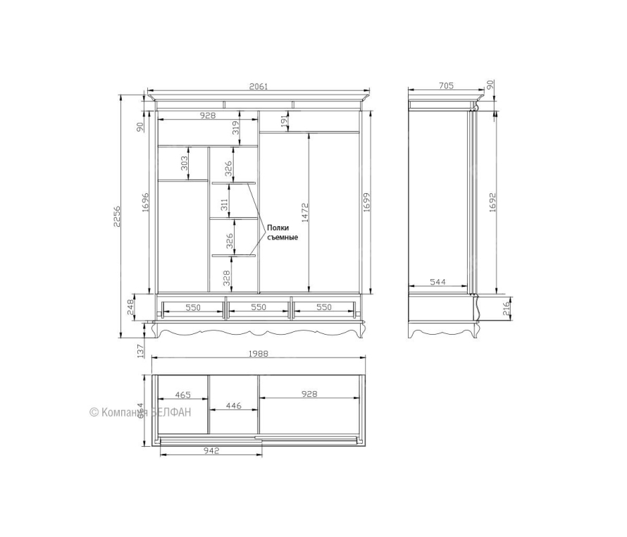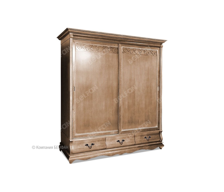 Компактный, но очень вместительный шкаф-купе для одежды «Оскар» (Oskar) является оптимальным вариантом для спальни. Изделие отличается изогнутым цоколем, декором резных элементов ручной работы, необычными цветовыми решениями и фурнитурой, отливающей золотом и серебром, что в целом характерно для мебели, выполненной в классическом стиле. В качестве материала выбран массив дуба, что делает мебель надежной и долговечной. Особенности двухдверного шкафа-купе для одежды «Оскар»: ? Экономит место в помещении, благодаря раздвижным дверям. ? Двери-купе бесшумные (при движении нет вибрации). Механизм - производства Германии. ? Универсальный и очень вместительный благодаря продуманной внутренней компоновке. ? Пыль не попадает в шкаф из-за ворсистого уплотнителя на дверках. ? Ящики с направляющими (пр-ва Австрии) полного выдвижения и бесшумного закрывания. ? Гнутые фасады ящиков и фигурный цоколь в виде «волны». ? Накладная декоративная резьба на дверках. ? Итальянская лицевая фурнитура Bosetti – Marella в золотом крашении. ? Экологичное покрытие - окрашено краской и лаком на водной основе. Обратите внимание, что данная мебель является крупногабаритным изделием. При заносе в помещение, лифт, дверные проемы, лестницы на второй этаж и другие узкие места могут возникнуть сложности. Обязательно проконсультируйтесь с продавцом. Схема шкафа-купе «Оскар»: