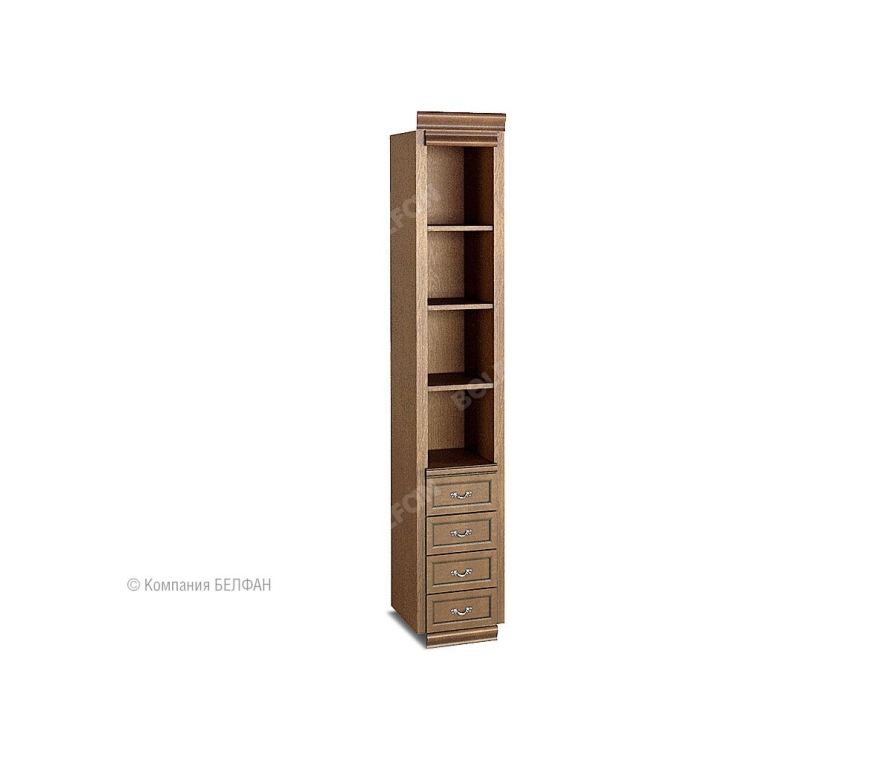 Стеллаж с ящиками «Оскар» (Oskar) из массива и шпона дуба станет прекрасным дополнением как к кабинету в классическом стиле, так и к гостиной или спальне. Обратите внимание: Данный шкаф необходимо доукомплектовать фасадами боковыми (левым и правым). Если Вы составляете несколько шкафов, Вам необходимо доукомплектовать пилястрой каждый стык между шкафами и фасадами боковыми (левым и правым) только крайние шкафы. Например: для 3 шкафов необходимы 2 пилястры + 1 фасад левый + 1 фасад правый. Особенности стеллажа с ящиками «Оскар»: ? Можно хранить ценные вещи, так как дверцы закрываются на ключ. ? Глубокие полки для книг. ? Направляющие ящиков в стеллажах полного выдвижения и бесшумного закрывания (производство Австрия). ? Оригинальные наружные петли бельгийского производства. ? Итальянская лицевая фурнитура. ? Экологичное покрытие, окрашено краской и лаком на водной основе. ? Высота между полками: нижняя 400 мм, между двумя средними 350 мм, верхняя 340 мм.