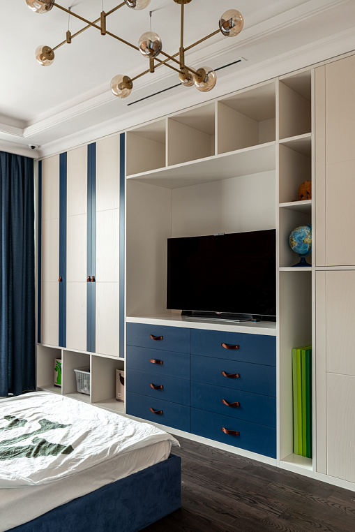 Распашные фасады и фасады ящиков - шпон ясеня коллекции "Сохо" (с изменениями) с покрасом в два цвета по Ral и NCS, петли Clip top Blumotion Корпус изделия - ЛДСП Egger, МДФ эмаль с покрасом по Ral/ Ящики на направляющих Tandem Blumotion *Указана минимальная стоимость изделия без учета стоимости услуг