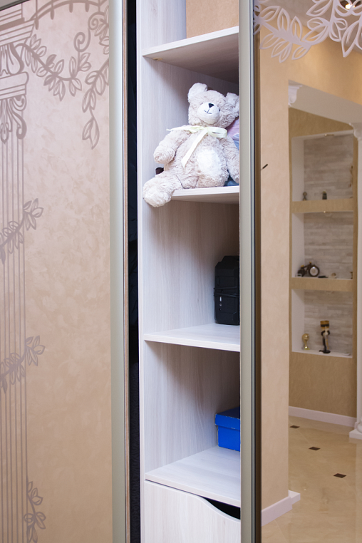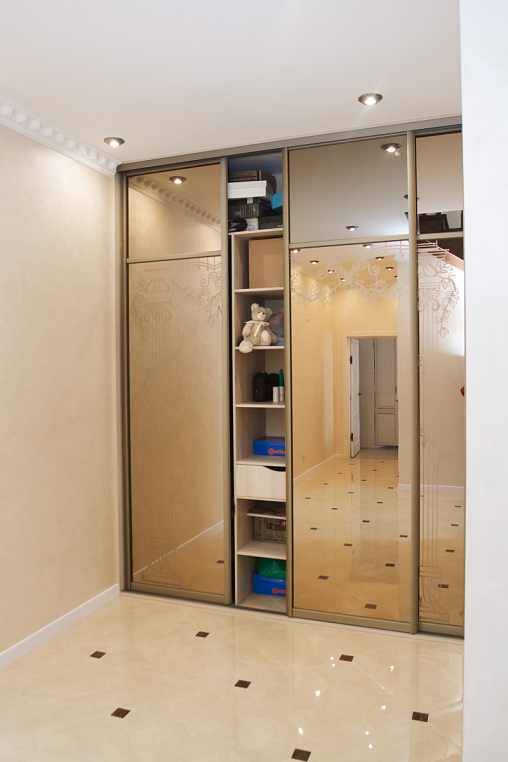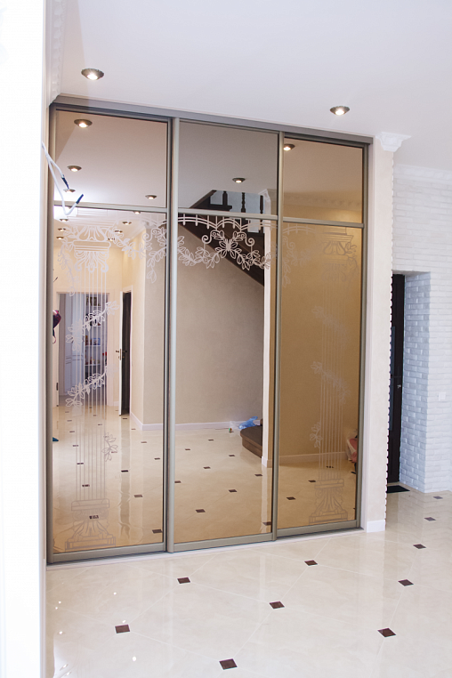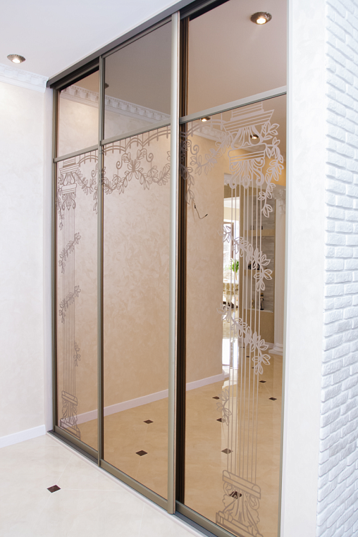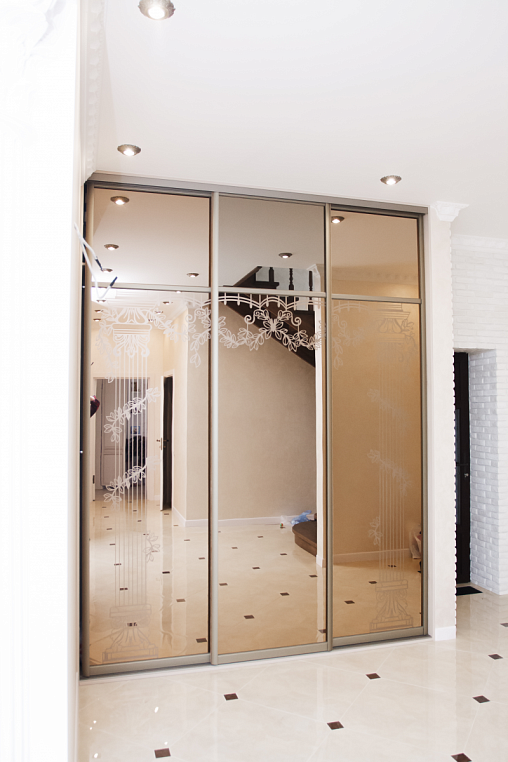 Фасад изделия - зеркало бронза с пескоструйной обработкой Корпус - ЛДСП Egger Акация лейклэнд Внутренее наполнение ящики, полки, труба горизонтальная *Указана стоимость изделия в минимальной комплектации без учета стоимости услуг