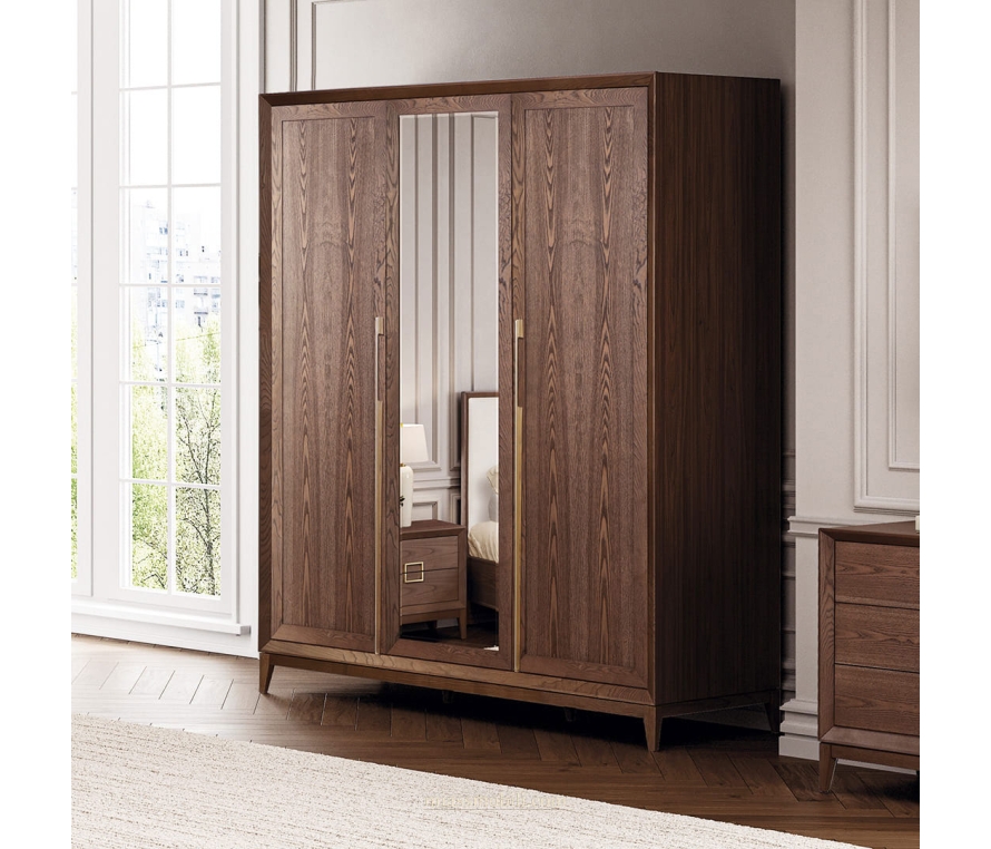 Шкаф трёхдверный в коллекции Модена представлен моделью с центральным зеркалом. Широкий фацет зеркала - едва уловимая деталь, придающая изделию необычный блеск и завершенный вид. Функциональное наполнение шкафов позволит Вам с удобством и комфортом разместить необходимые вещи: в правой части предусмотрена полка со штангой для хранения длинных вещей и одна полка нижнего расположения. Габаритный размер указан по максимально выступающим частям изделия.