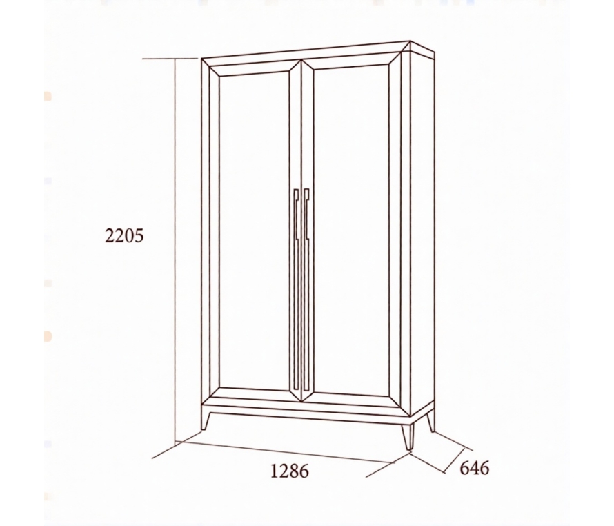 Шкаф 2-х дверный в коллекции Modena представлен моделью без зеркала.Функциональное наполнение шкафа позволит Вам с удобством и комфортом разместить необходимые вещи.Габаритный размер указан по максимально выступающим частям изделия.