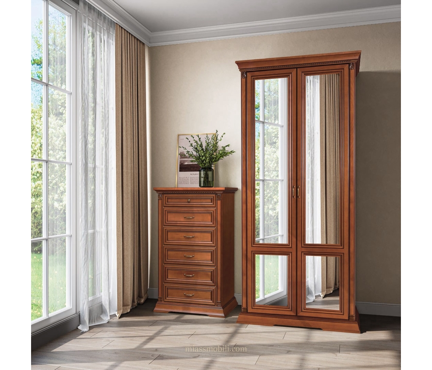 Шкаф 2-х дверный с зеркалами. Функциональное наполнение шкафа позволит удобно и комфортно разместить необходимые вещи. Установлены 2 полки: в верхней и нижней части шкафа. Полка в верхней части шкафа укомплектована штангой для верхней одежды. Габаритный размер указан по максимально выступающим частям изделия.