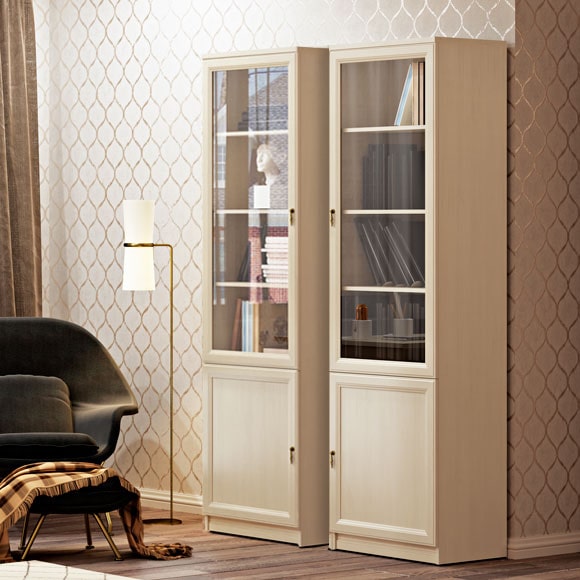 Книжный шкаф необходимый элемент как в домашнем кабинете так и в комнате ученика-подростка. Однодверная витрина для книг из модульной коллекции мебели для дома Екатерина выполнена в цвете крем. Возможность соединения модулей на межсекционную стяжку позволяет из однодверных модулей собрать шкафы для книг необходимого объема. Габаритный размер указан по максимально выступающим частям изделия.