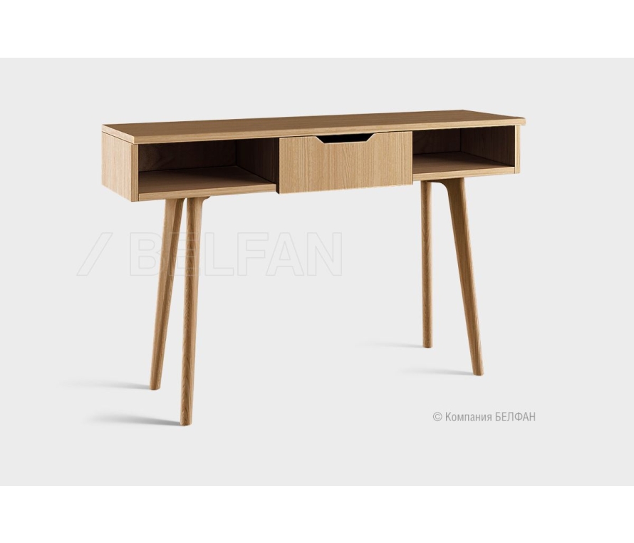Мебель для гостиной Elva («Эльва») понравится тем, кто не любит вычурность, множество деталей. Что-то свое в ней найдут сторонники и классики, и современности. Она для тех, кто ценит простоту, комфорт и пространство. Особенности Консоли Elva (высокая): ? Открытые полки придают легкость и грациозность. ? Консоль может выполнять функции столика и подставки под разные нужные вещи. ? Изделие покрыто бейц-маслом – экологичным составом из натуральных компонентов. ? Консоль изготовлена из массива и шпона дуба. ? Благодаря высоким ножкам, легко проводить влажную уборку. Мебель из массива дерева необыкновенно красива, добротна и славится своим долголетием. Однако, чтобы продлить этот срок, сохранить мебельным изделиям первоначальную элегантность и отличный внешний вид, за ней необходим надлежащий уход. Если у вас появились царапины, следы от кружки или мокрой тряпки, то сервис-бокс от компании BELFAN поможет вам вернуть мебели первозданный вид даже в домашних условиях. Данный сервис-бокс подходит только для мебели в крашении бейц-масло. Схема консоли высокой: