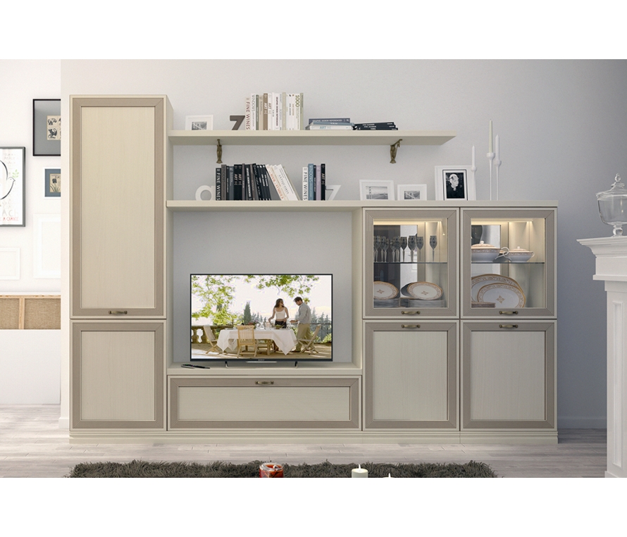 Состав:Шкаф Адажио АГ-224.13, Д1 — 1 шт;Тумба Адажио АГ-324.02 — 1 шт;Шкаф Адажио АГ-260.02, Д1 — 2 шт;Полка настенная Адажио АГ-026.03 — 1 шт;Полка навесная Адажио АГ-025.03 — 1 шт.Особенности:Адажио — это традиционное прочтение итальянской классики. Мебель из коллекции подойдет не только к классическим интерьерам, но и к гостиным в стилях фьюжн, контемпорари и эклектика;Гостиная будет гармонировать с пастельными оттенками бирюзы, синего, терракотового, теплого серого. Если же вы хотите добавить акцентов в декоре — используйте глубокие оттенки тонов, перечисленных выше;Гостиная Адажио понравится семейным людям, ценителям классики и традиций. Она создана для уютных вечеров с близкими людьми, размеренному чтению любимых книг и просто приятных кинопросмотров за кружкой чая.Характеристики:Мебель выполнена в цвете «валенсия». Фасады вручную покрыты патиной и испанским лаком, который отличается повышенной атмосферо- и светостойкостью и не желтеет со временем;В гостиной есть вся необходимая мебель для хранения: три напольных шкафа, тумба с выдвижным ящиком и две вместительные полки. Для самого важного всегда найдется место;У напольных шкафов со стеклянными вставками есть зеркала на задних стенках. Это помогает зрительно расширить комнату;Напольный шкаф без стеклянной вставки оборудован горизонтальной стойкой и выдвижной штангой для одежды. Дополнительно вы можете установить один или два комплекта полок АГ-006.00.Материалы:Вся лицевая фурнитура в коллекции Адажио выполнена из латуни в стильном оттенке «старая бронза»;Для гостиной используется крепежная фурнитура и механизмы ведущих производителей (Titus, Hettich). Такая фурнитура позволит мебели прослужить дольше, не требуя частого ремонта;Для плавного закрывания дверей используются петли Titus с накладным демпфером (с возможностью регулирования степени «демпфирования»);Полка АГ-025.03 навешивается на стену на декоративных менсолодержателях (МакМарт);В выдвижных ящиках используется система скрытых направляющих Quadro (Hettich, Германия) с функцией «стоп-контроль». Это дает возможность легко и почти бесшумно выдвигать-задвигать ящики, а также обеспечивает надежную фиксацию ящика и гарантирует длительный срок службы даже при высокой нагрузке.Легкий, воздушный неоклассический комплект, оформленный в сливочном оттенке «валенсия», идеально дополнит помещение в стиле контемпорари, fusion, эклектика.В гарнитуре предусмотрено место для всего необходимого: тумба с выдвижным ящиком предназначена для хранения ТВ-аксессуаров и гаджетов, на двух вместительных полках можно разместить домашнюю литературу. Для одежды имеется напольный шкаф с глухим фасадом, снабженный горизонтальной стойкой и микролифтом.Застекленные шкафы-витрины с фрезерованными филенками позволят продемонстрировать гостям редкие издания, дорогой чайный сервиз или семейные фотографии, а LED-подсветка поможет подать ценные предметы в выгодном свете. Внутренние зеркальные стенки визуально увеличивают пространство. Изящные карнизы, стильная фурнитура в цвете «старая бронза», технология патинирования обеспечивают элегантный налет старины.
