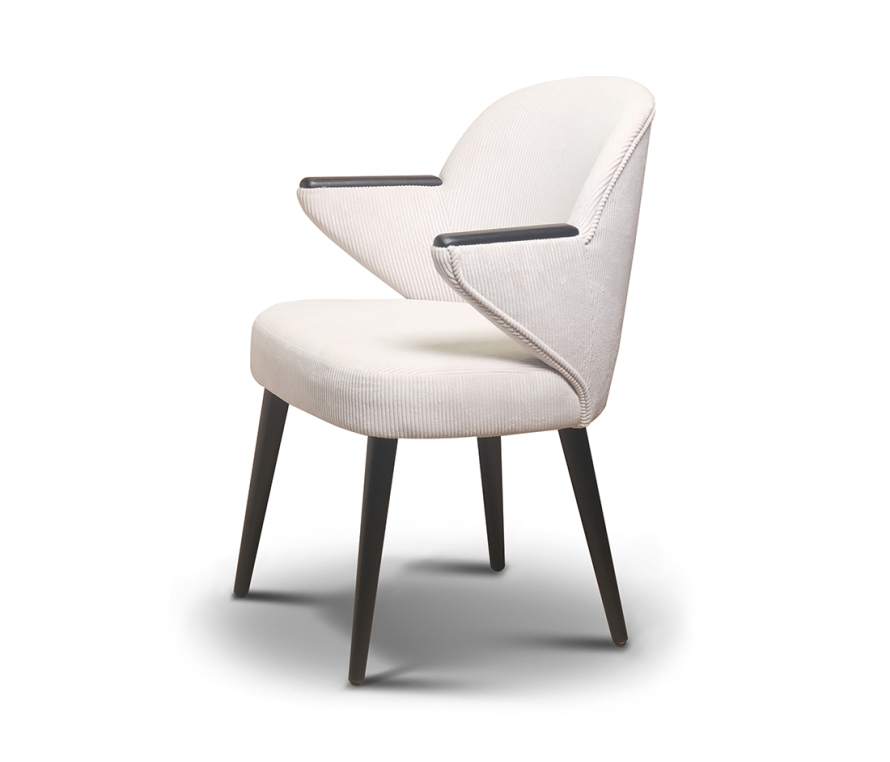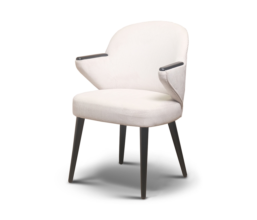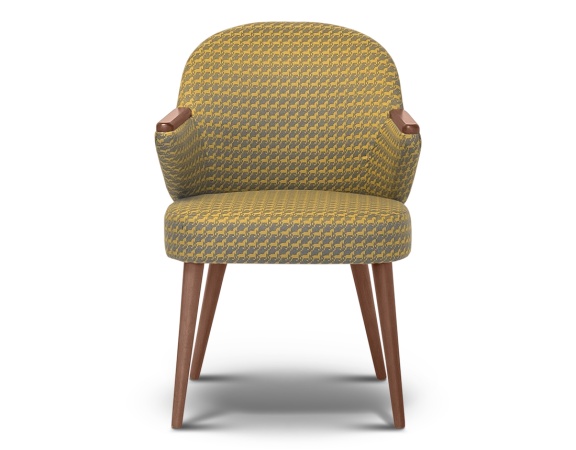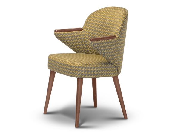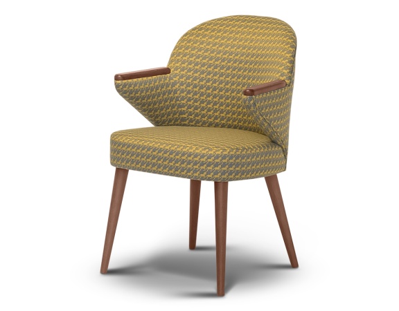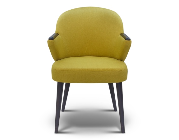 Дизайнерское полукресло с оригинальными точеными ножками. Эта модель придется по вкусе тем кто предпочитает современную классику. Отделка подлокотников натуральным деревом придает солидность и и при этом модель нельзя назвать строгой. Округлая форма спинки и ножки в стиле 60-х придают некий шарм и легкость. Возможны любые варианты отделки и обивки.