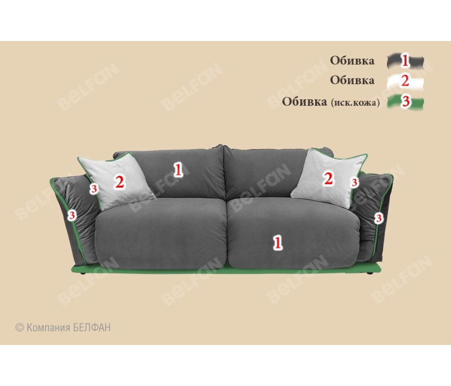 Современный диван «Ferre» отличается отрицанием условностей, он близок ценителям свободы самовыражения. Дизайнерский диван креативен, но в то же время прост и лишен ненужных деталей. Оригинальные формы подлокотников дивана придают индивидуальные очертания, а до мелочей выверенная глубина посадки и мягкость сиденья делает его поразительно удобным. Диван имеет наполнитель с эффектом памяти Memory Foam - подушки моментально подстраиваются под индивидуальные особенности тела. Особенности дивана Ferre 2-х местного: ? Каркас сиденья, спинок, подлокотников: основные несущие детали - цельная древесная плита, усилена деревянными брусками. Рамочная конструкция из МДФ 15 мм. Каркасы оклеены ППУ 10мм и синтепоном. ? Сиденье мягкое на основе пружины «змейка». Наполнение сиденья – ППУ высокоэластичный 160мм, ППУ вязкоэластичный с эффектом памяти Memory Foam высотой 120 мм. ? Подушки сиденья закрепляются на верхнем матрасе при помощи контактной ленты (застёжки-липучки) и пластиковых карабинов. ? Наполнение спинных подушек – синтетическое волокно (синтепух). ? Наполнение мягких подлокотников – синтетическое волокно (синтепух). ?Соединение модулей при помощи скрытых металлических соединителей «крокодил». Крепление пуфа секция 18 по передней линии изделия не возможна по техническим условиям. ? Опоры - пластиковые. ? В комплекте с диваном идут 2 декоративные подушки 52х52 cм. ? Высота посадочного места - 480 мм, глубина посадочного места - 650 мм. ? Высота опорной задней стенки - 720 мм, высота боковин - 610 мм. ? Изображение на сайте дает общее представление о товаре. Цвет на фото может отличаться от реального из-за особенностей цветопередачи мониторов. Скачать схему сборки дивана Ferre: Видеообзор: диван Ferre