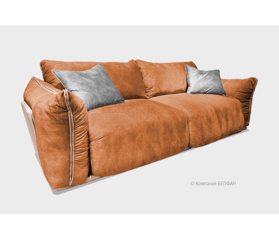 Современный диван «Ferre» отличается отрицанием условностей, он близок ценителям свободы самовыражения. Дизайнерский раскладной диван креативен, но в то же время прост и лишен ненужных деталей. Оригинальные формы подлокотников дивана прямого придают индивидуальные очертания, а до мелочей выверенная глубина посадки и мягкость сиденья делает его поразительно удобным. Комфортный сон и отдых для Вас или гостей обеспечивает встроенный механизм трансформации в удобный диван-кровать. Диван трехместный имеет наполнитель с эффектом памяти Memory Foam - подушки моментально подстраиваются под индивидуальные особенности тела. Купить диван раскладной можно в нашем интернет-магазине, а так же в магазинах розничной сети в Москве, Санкт-Петербурге, Краснодаре или Новосибирске. Особенности дивана Ferre 3-х местного: ? Каркас сиденья, спинок, подлокотников: основные несущие детали - цельная древесная плита, усилена деревянными брусками. Рамочная конструкция из МДФ 15 мм. Каркасы оклеены ППУ 10мм и синтепоном. ? Раскладной диван: Спальное место - 2 матраца на основе блока независимых пружин. Наполнение сиденья – ППУ высокоэластичный 120мм, ППУ вязкоэластичный с эффектом памяти Memory Foam высотой 40 мм. ? Спальное место обеспечивается снятием мягких элементов и переворота верхнего матраса. Матрас с блоком независимых пружин, на эластичном основании размером 2000х1400 мм. ? Подушки сиденья закрепляются на верхнем матрасе при помощи контактной ленты (застёжки-липучки) и пластиковых карабинов. ? Наполнение спинных подушек – синтетическое волокно (синтепух). ? Наполнение мягких подлокотников – синтетическое волокно (синтепух). ? Опоры - пластиковые. ? В комплекте с диваном идут 2 декоративные подушки 52х52 cм. ? Высота посадочного места - 480 мм, глубина посадочного места - 650 мм. ? Высота опорной задней стенки - 720 мм, высота боковин - 610 мм. ? Высота матраса спального места - 150 мм. ? Изображение на сайте дает общее представление о товаре. Цвет на фото может отличаться от реального из-за особенностей цветопередачи мониторов. Скачать схему сборки дивана Ferre: Видеообзор: диван Ferre