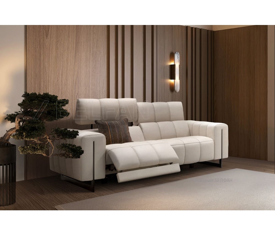 Дизайнерский диван-реклайнер «GENESI» — поразительная красота, обнимающие формы и комфорт сидений из мира будущего . Комфортный диван-реклайнер «GENESI» прекрасно впишется в интерьер спальни, гостиной, детской или кабинета. Особенности дивана 2-х модульного «Genesi»: ? Диван по мягкости посадки относится к категории Elastic (упругий). ? Каркас спинки и боковин выполнен из гнутой фанеры класса Е 1 - является экологичным продуктом, предназначенным для изготовления детской мебели. ? Основание выполнено с использованием брусковых заготовок из цельной древесины лиственных пород (бук, береза) и хвойных пород (сосны). ? Наполнение подушки сиденья и спинки высокоэластичный пенополиуретан (ЛППУ)+синтепон ? Опоры металлические. Опоры-цельный сварной каркас. Устойчив к нагрузке до 240кг. ? Модель создана с учетом анатомических особенностей. ? Изображение на сайте дает общее представление о товаре. Цвет на фото может отличаться от реального из-за особенностей цветопередачи мониторов.