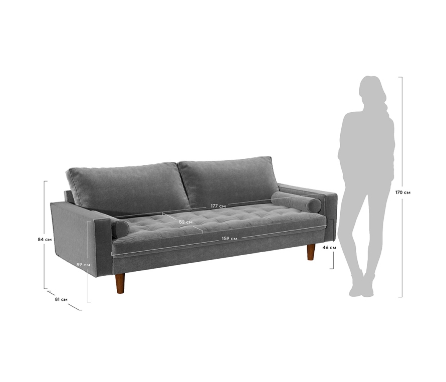 Трёхместный диван Scott — мягкий и стильный предмет интерьера, сочетающий европейский дизайн и удобство. Сдержанная цветовая палитра мебели создана дизайнерами в соответствии с новейшими трендами. Обивка дивана выполнена из велюра, поэтому поверхность устойчива к заломам и выпадению ворсинок и сохранит отличный вид в течение долгого времени. Ткань с мягкой бархатистой поверхностью неприхотлива в уборке и легко поддается сухой чистке при помощи пылесоса, щетки или валика. Выполненный в актуальных цветах, диван в обивке из велюра украсит ваш дом и станет местом притяжения. Дополнить ваш интерьер так просто — нужно всего лишь купить диван Scott.