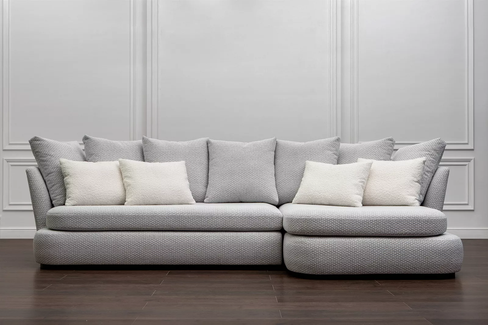 Изготовление на заказ по Вашим размерам в обивочной ткани на выбор. Размер дивана: 3300 х 1500 х 760Модуль: 1970 х 1080 х 760Кушетка: 1330 х 1500 х 760Наполнитель приспинных подушек: гипоаллергенный искусственный лебяжий пух.Каркас: брус хвойной породы.БЕЗ механизма трансформации.В наших салонах представлена собственная коллекция мебельных тканей разных типов и ценовой категории, а также ткани других поставщиков.Наши менеджеры помогут Вам подобрать идеально подходящую обивочную ткань для мягкой мебели.