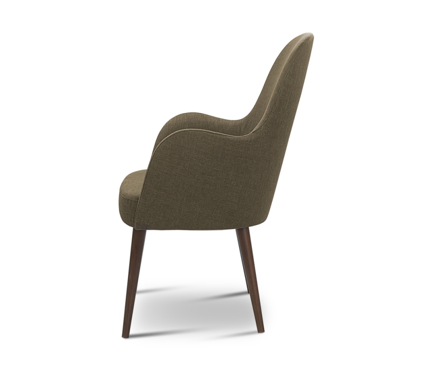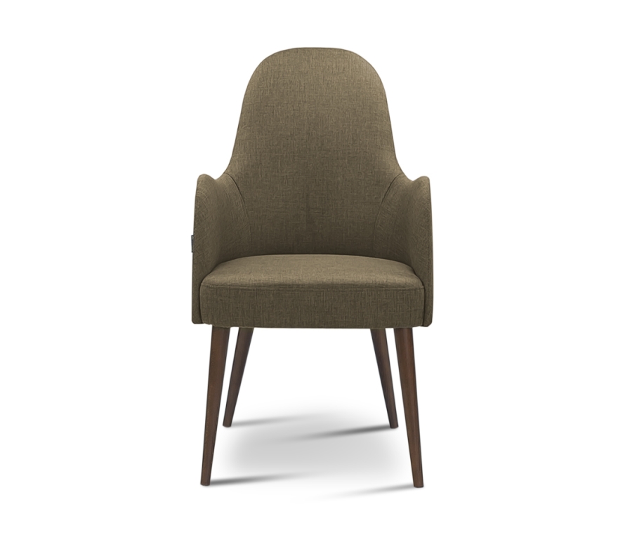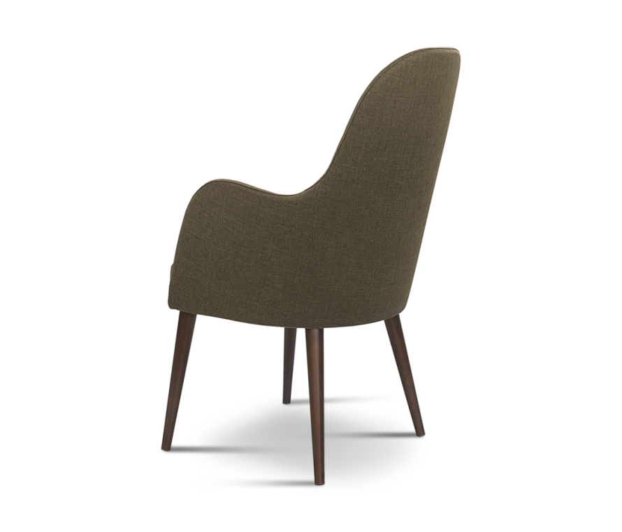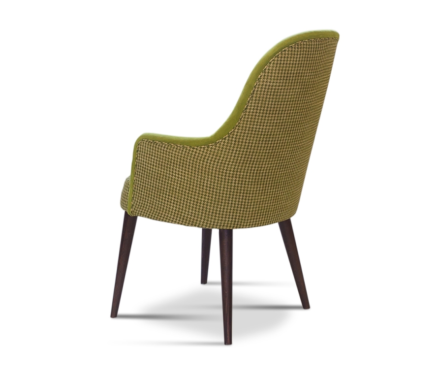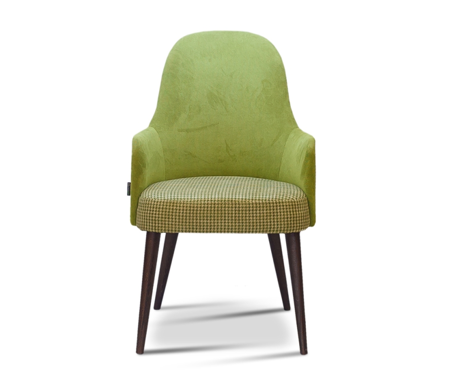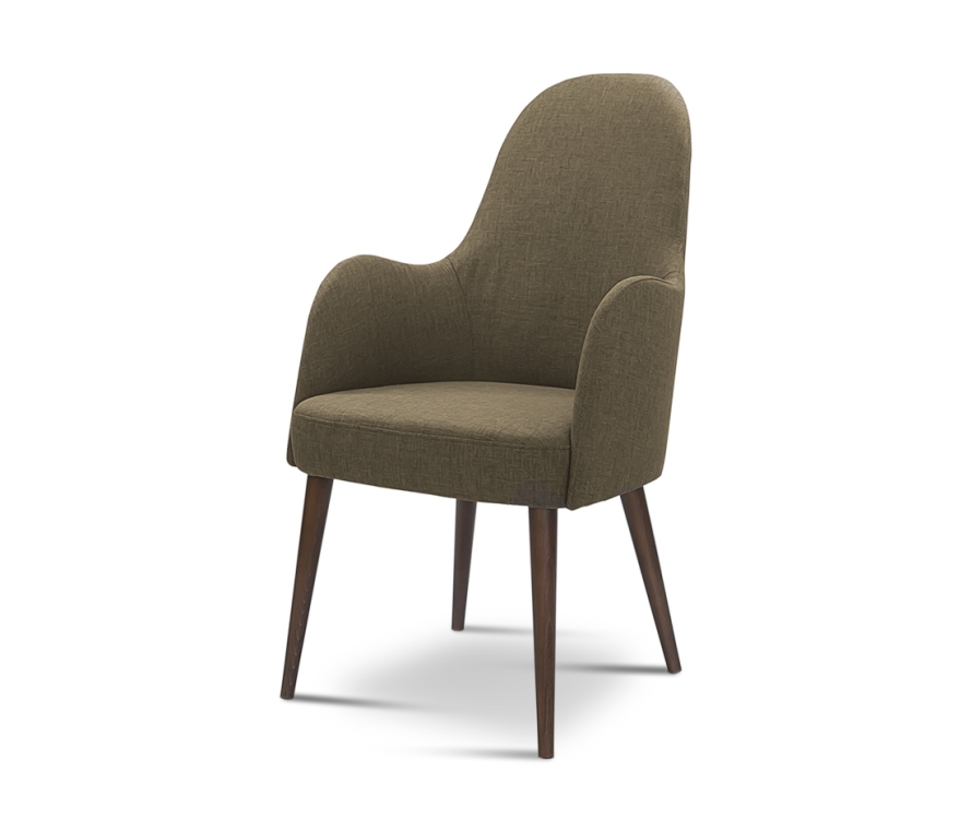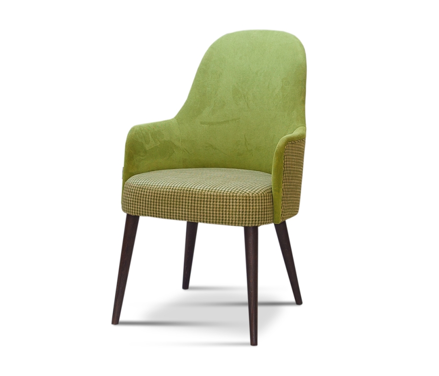 Обеденный стул с красивой высокой спинкой. Эта коллекция очень популярна и имеет целый набор изделий. Отделку этой модели можно обыграть контрастными по цвету и фактуре материалами для внешней стороны спинки и внутренней. Удобный наклон спинки и интегрированный настил сиденья с резино-тканевыми ремнями доставят комфорт любому члену семьи. Красивые ножки в стиле 60-х годов смотрятся очень модно и это излюбленный элемент дизайнеров. Возможны любые варианты отделки и обивки.