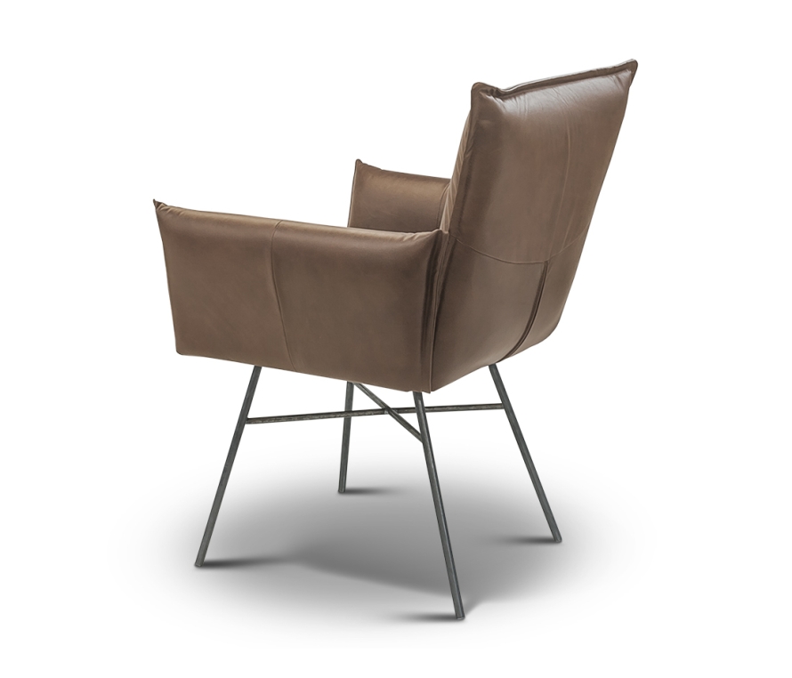 Дизайнерское полукресло в современном стиле. Тонкие металлически ножки контрастируют с объемной форой верхней части. Прямые линии этого кресла смотрятся очень эффектно, а настил мягкого наполнителя выполнен таким образом чтобы с этого полукресла не хотелось вставать. Для отделки вы сможете выбрать любую кожу или ткань и выбрать цвет для каркаса. Возможны любые варианты отделки и обивки.