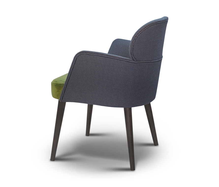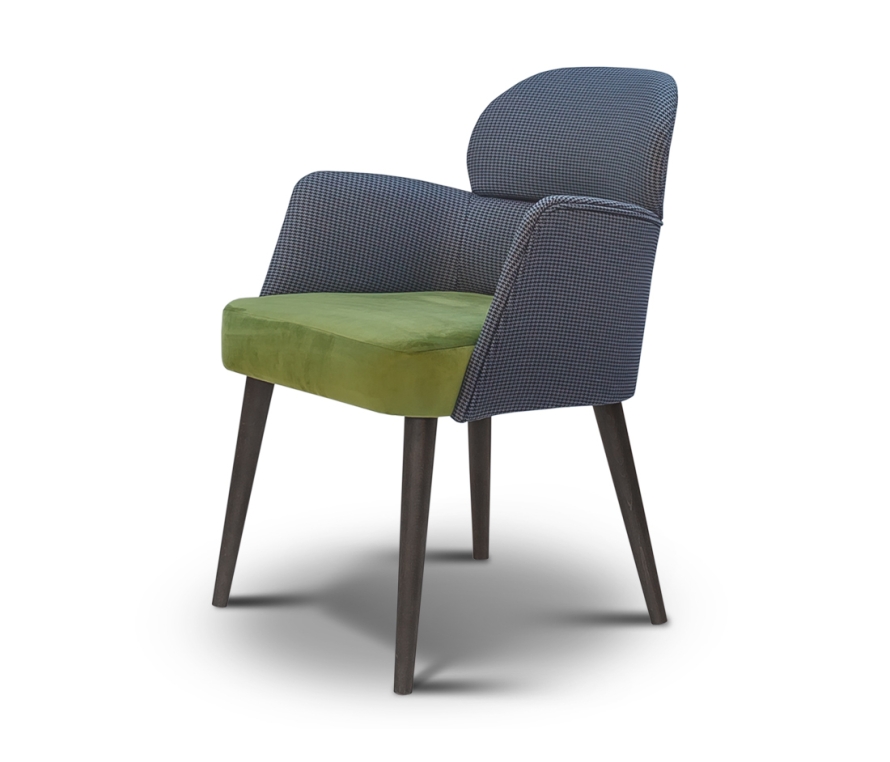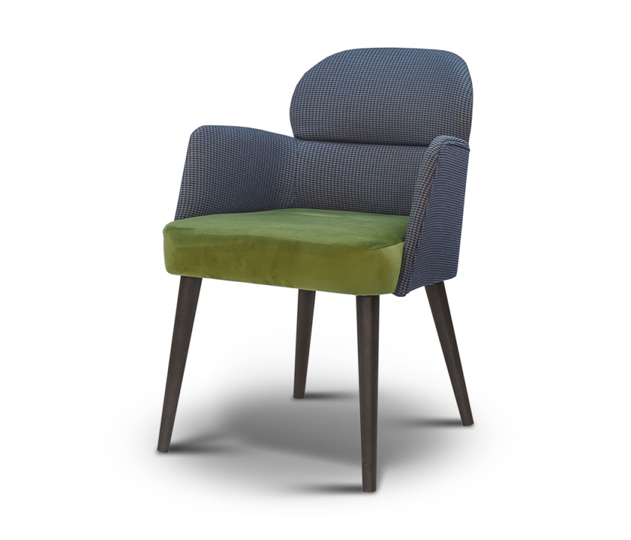 Дизайнерское полукресло на деревянных ножках. Модный дизайн этой модели придется по вкусу самой требовательной публике.Удобный наклон спинки и настил сиденья с использованием резинотканевых ремней доставят комфорт каждому члену семьи. Ножки в стиле 60-х отлично дополняют этот дизайн. Цвет ножек клиент может выбрать перед заказом.