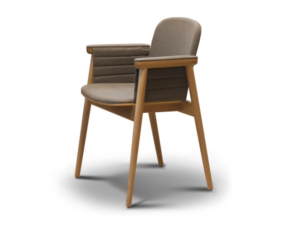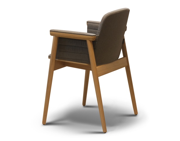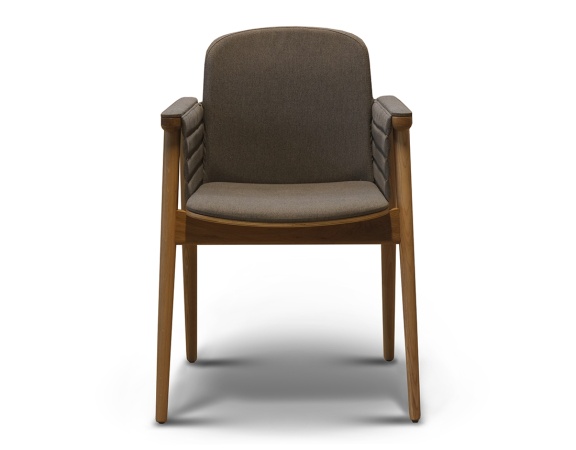 Оригинальная современная модель. Модное сочетание открытого дерева и ткани позволит этому полукреслу вписаться и украсить любой проект. Элегантная горизонтальная прострочка на подлокотниках является дополнительной опцией в этой модели, возможно исполнение когда подлокотники прозрачные и не закрыты тканью. Выбор материалов практически безграничен.
