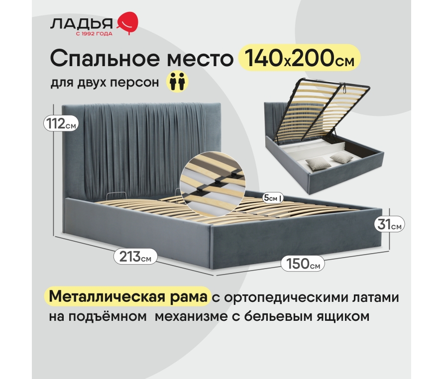кровать Мелилья 140 Сonfetti Blue Stone