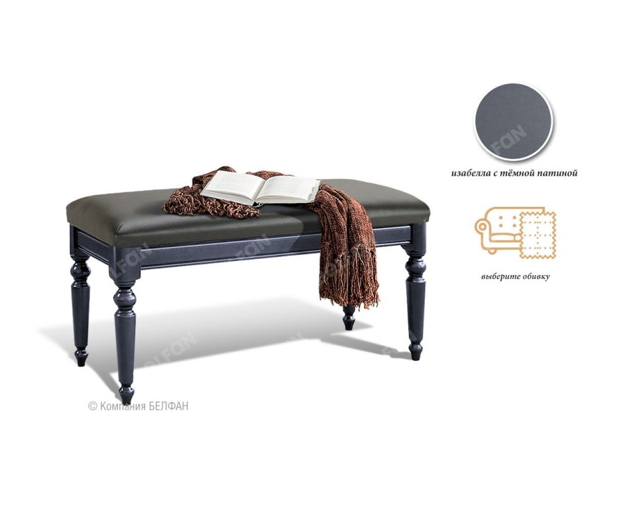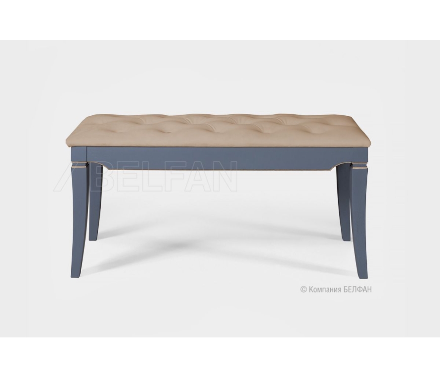 Банкетка "Стюарт" (большая) для Вашей спальни в классическом стиле. Особенности большой банкетки «Стюарт»: ? Современный классический дизайн. ? Высокие резные ножки изделия с позолоченной фрезеровкой. ? Эффектное сидение банкетки, изготовленное из мягкого велюра с каретной стяжкой. ? В покрытии изделия используются краски на водной основе, что свидетельствует о безопасности и соответствует высоким стандартам качества. ? Ножки изготовлены из массива дуба. ? Цоколь изготовлен из шпонированного дубом МДФ класса безопасности Е1. Видеообзор спальни "Стюарт" в цвете "марено" Видеообзор спальни "Стюарт" в белом цвете