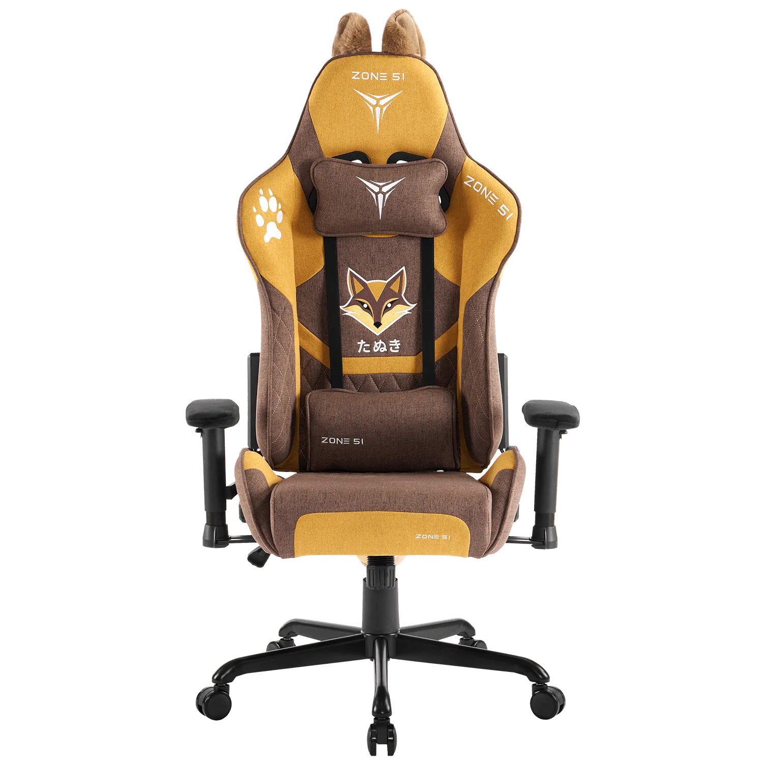 КРЕСЛО ДЛЯ НАСТОЯЩИХ ХИТРЫХ ЕНОТИКОВ Первое, что поражает в Tanuki – его живой дизайн, словно сошедший со страниц с мифами и легендами. Корпус кресла напоминает силуэт зверька-оборотня: пушистый хвост, изогнутый как луна, и уши, слегка приподнятые, будто прислушивающиеся к шепоту ветра. Обивка в коричнево-золотистых тонах – это шкура осени, переливающаяся оттенками кленовых листьев под закатом. Спинка, украшенная вышивкой в виде следов тануки, кажется дверью в другой мир. Это не просто кресло – это живой артефакт, где каждая строчка ткани и каждый изгиб металла шепчут о древних легендах. "ШЕРСТКА" ТАНУКИ ДАРУЕТ ДОЛГОВЕЧНОСТЬ Обивка из натуральной ткани мягка, как шелк для чайной церемонии, и прочна, как кора ясеня. Она пропускает воздух, как ветер сквозь бамбуковую рощу, сохраняя прохладу даже в летний зной. Её текстура напоминает шкуру зверька – шероховатую на вид, но нежную на ощупь. Это не просто материал – это "губка", которая впитывает тепло тела и дарует прохладу, создавая микроклимат, где нет места дискомфорту. НАПОЛНИТЕЛЬ, МЯГКИЙ КАК ХЛОПОК САКУРЫ Ультраплотный пенополиуретан – это "облако", сотканное из лепестков сакуры, которое не продавливается даже под весом тела. Он обнимает тебя, как мох на камнях горячего источника, принимая форму спины, бедер и плеч. Этот материал обеспечивает максимальный комфорт и долговечность, позволяя тебе чувствовать себя в уютных объятиях зверька тануки. КРЕПЧЕ МЕЧА САМУРАЯ Стальная рама толщиной 1,5 мм – это катана духа гор, выкованная в огне богов. Она не гнётся, не шатается, а лишь хранит твой покой, выдерживая до 150 кг, как богиня-воительница Аматэрасу хранит равновесие мира. Это не просто каркас – это основа твоего трона, устойчивая, как пагода в ураган. АНАТОМИЯ, ВЫКОВАННАЯ ДУХАМИ Форма кресла ZONE 51 Tanuki, напоминающая спортивный ковш, создана для максимальной поддержки тела и позвоночника, обеспечивая идеальное положение даже во время длительных игровых сессий или работы. Эта динамичная и современная форма повторяет естественные изгибы тела, позволяя полностью погрузиться в процесс без дискомфорта или усталости. Спортивный ковш сиденья обнимает тебя, как лапы зверька, готовые удержать в безопасности. Сиденье повторяет контуры тела так, будто его создал сам Идзанаги, бог-формовщик, – идеально, безупречно, словно ты лежишь на татами в хижине горного монаха, а не восседаешь в кресле. Шейная и поясничная подушки – это омамори (талисманы) от боли, сотканные из волокон, которые использовали монахи для медитаций. Они мягко поддержат, как ладони Будды, превращая долгие часы работы в путешествие по облакам. Шейная подушка повторяет изгиб твоего затылка, как луна повторяет форму пруда, а поясничная – словно ладони верного самурая, готовые поддержать господина и прикрыть спину. Это не просто подушки – это сёги (обереги), которые ставят барьер между тобой и усталостью. На спинке Tanuki ты можешь обнаружить увидеть различные детали, которые дополняют внешний вид модели...