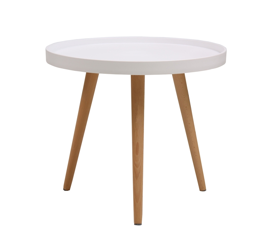 Небольшой круглый кофейный столик Aurora в белом цвете высотой 44,5 см. Диаметр столешницы - 50 см, материал – полипропилен. По краю стола сделан аккуратный бортик, за счет чего можно не бояться что-то пролить. Ножки из натурального бука обеспечивают устойчивость и легкость. Данный кофейный столик с легкостью впишется в интерьер выполненный в скандинавском стиле.