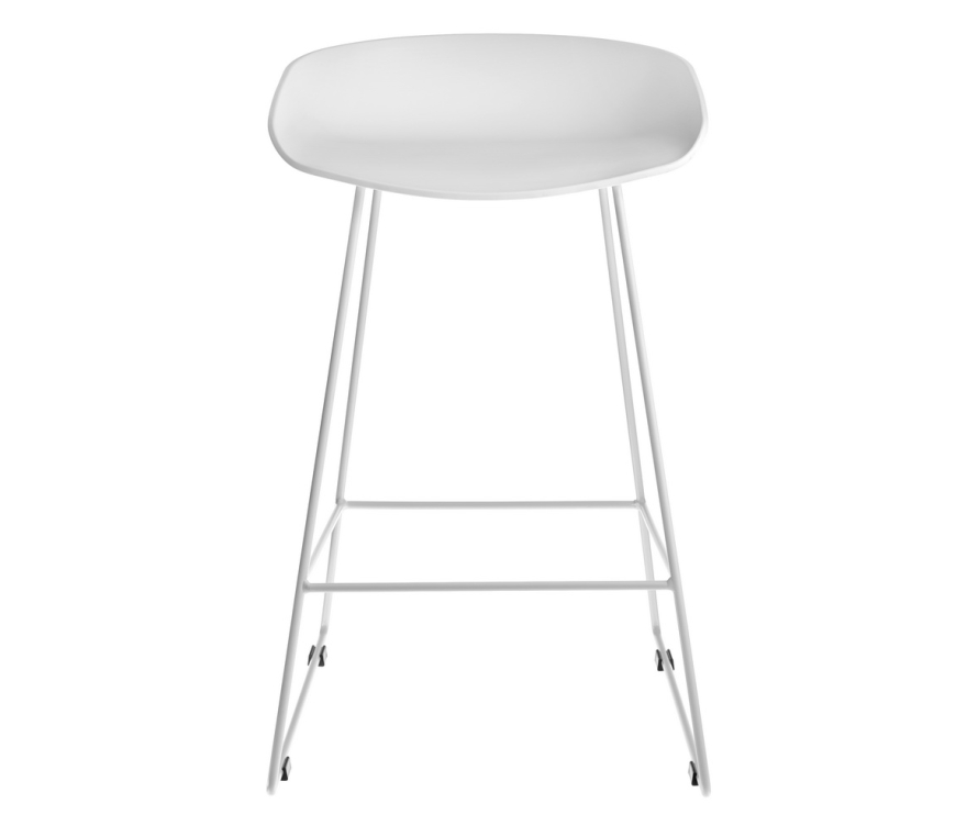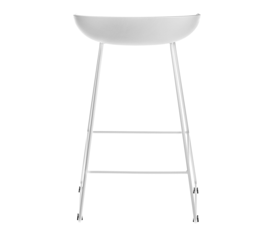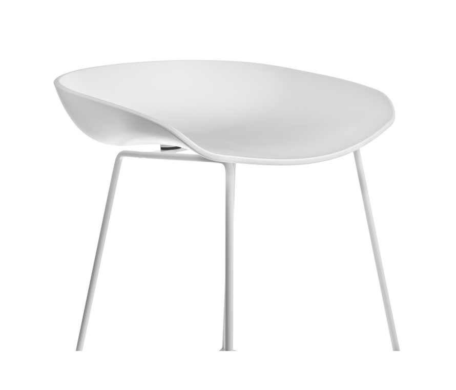 Утончённые металлические опоры, сиденье из пластика с невысокой спинкой - это минималистический современный дизайн полубарного стула NEO черный с черными ножками.