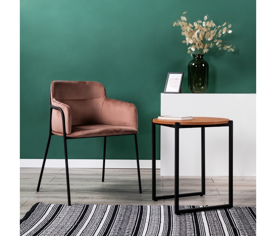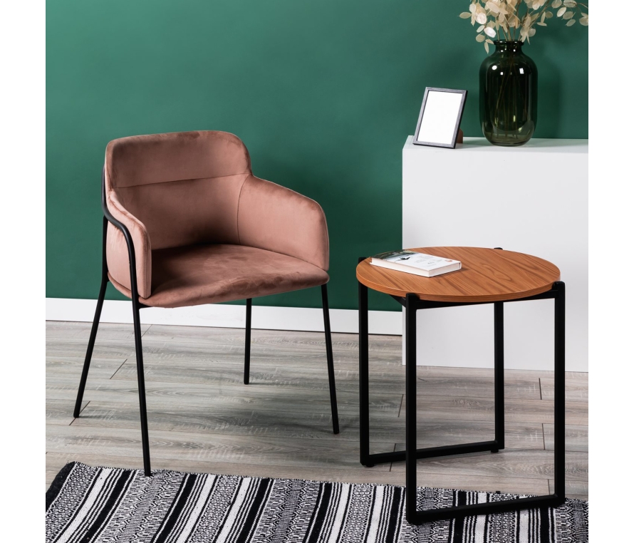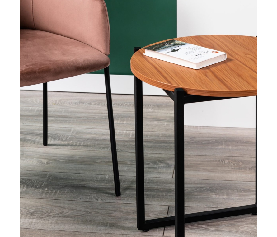 Изысканный кофейный столик Clio станет украшением вашего дома. Ножки столика выполнены из металлического профиля, окрашенного порошковой краской. Столешница, износостойкая, выполнена из ЛДСП Egger в цвете Вишня Локарно.