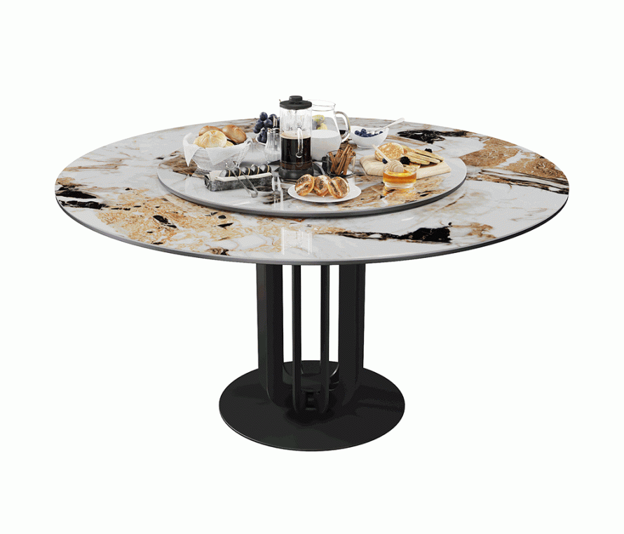 BOLZANO 138 ELITE CER — круглый стол с текстурой бежевого гранита. Эта модель получила двойную столешницу. Сверху — вращающаяся съемная подставка. Оба уровня отделаны глянцево