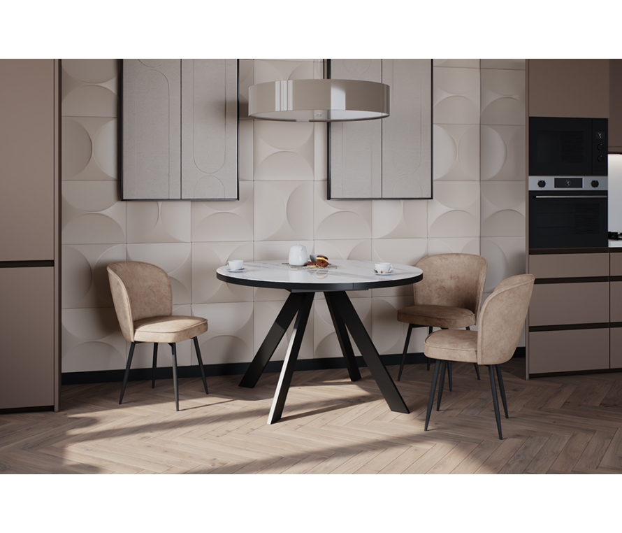 Обеденный стол FARGO 120 MARBLE CER — идеальное сочетание стиля, функциональности и надежности. Его лаконичный дизайн в духе современного минимализма с круглой столешницей и ч