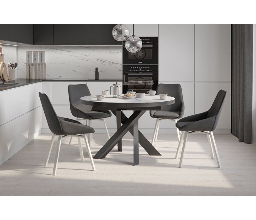 Стол MALMO 120 MRB PL CER – это вместительный круглый стол с перекрещенными ножками. Каркас стола изготовлен из нержавеющей чёрной стали, он прочный и гарантированно прослужит
