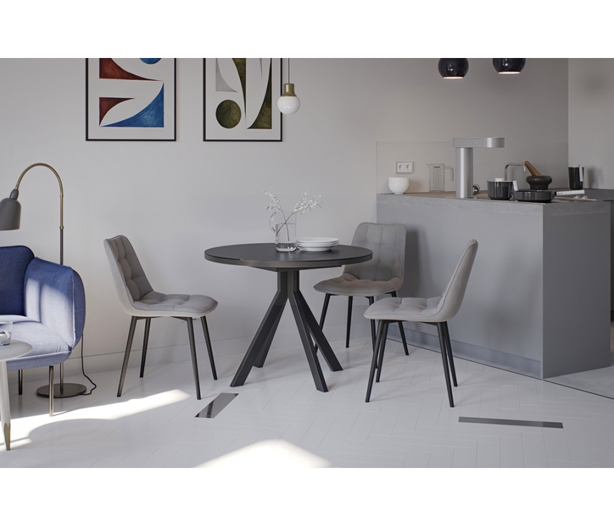 Обеденный стол OSAKA 100 NERO CER+ — идеальный баланс компактности и функциональности для современных интерьеров. Его лаконичный дизайн в стиле минимализма с круглой столешниц