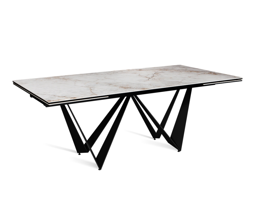 Стол PONTE 200 CALIFORNIA CER на треугольных опорах притягивает футуристической нереальностью и кажется парящим в воздухе. Однако нержавеющая сталь, из которой выполнен каркас