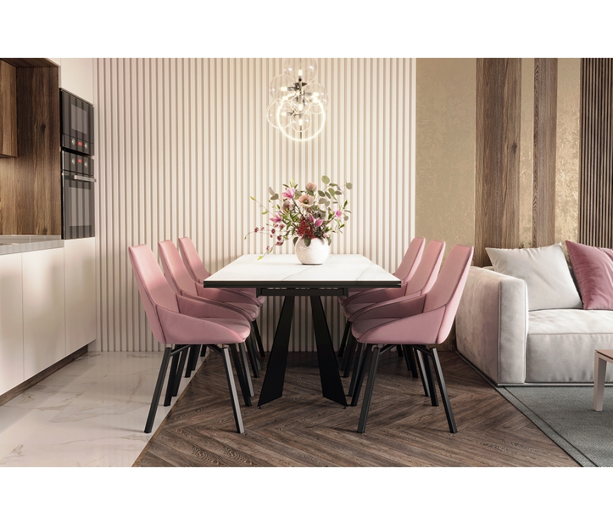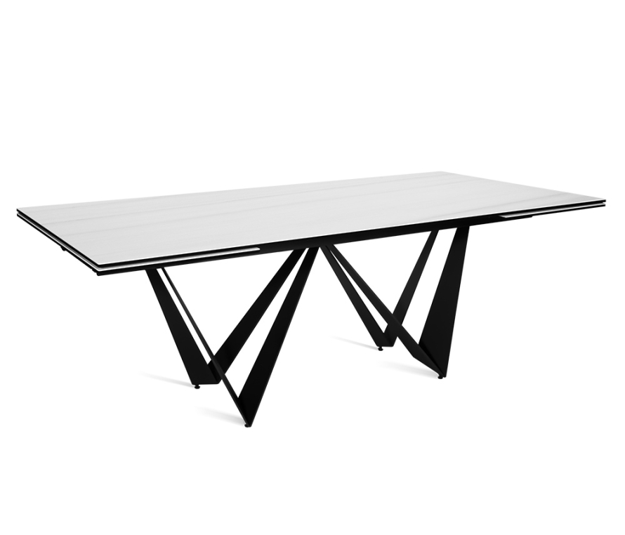 Стол PONTE 200 DUOMO CER на треугольных опорах притягивает футуристической нереальностью и кажется парящим в воздухе. Однако нержавеющая сталь, из которой выполнен каркас, над