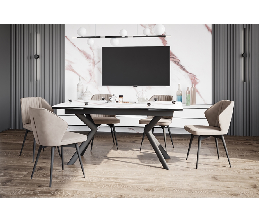 Расцветка розовое золото придает столу RIO 160 ROSE GOLD CER очень стильный вид, а отборная Испанская керамика обеспечивает выразительность рисунка и, при этом, делает столешн