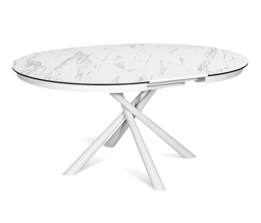 Стол RONDO 120 120 MRB PL CER W — пример того, как самые традиционные решения могут оказаться современными и необычными. Эта модель имеет столешницу простой круглой формы. Под