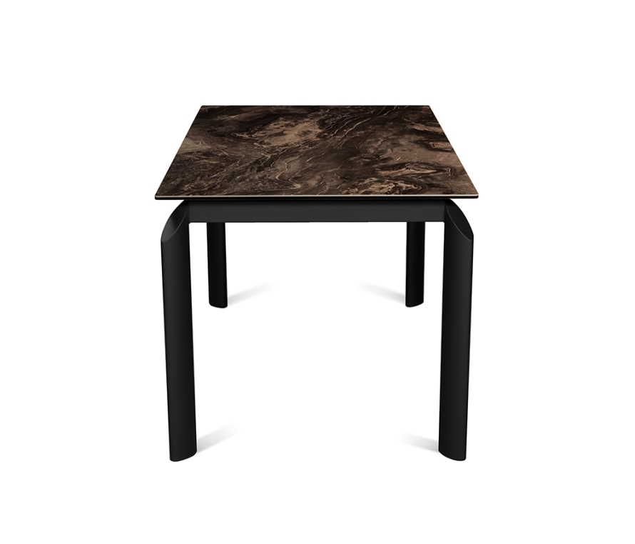 Особенность дизайна стола TOSCANA 140 DOLOMITE CER BK — сочетание простых форм и элегантных акцентных деталей. Верхняя часть изготовлена из керамики премиального класса и зака