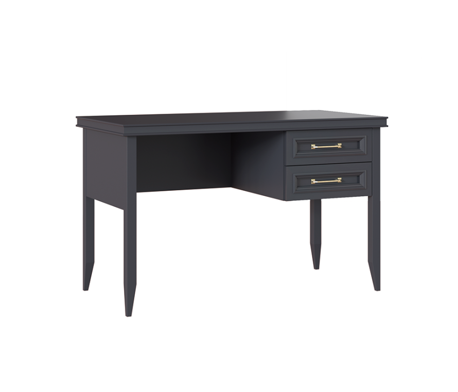 Характеристики:Стол письменный с двумя выдвижными ящиками;Максимальная распределенная нагрузка на дно выдвижных ящиков — 4-5 кг, при условии равномерного распределения (не класть тяжелые предметы, которые могут повредить и выдавить дно);Цвет: серый уголь.Материалы:Каркас: ЛДСП толщиной 16 мм класса эмиссии Е1;Фасады: рамочные;Задние стенки: крашенная ДВП в цвет каркаса;Рамочные фасады в цвет каркаса;Опоры буковые, крашенные в цвет основного каркаса;