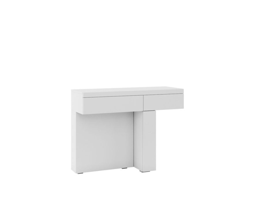 Стол туалетный с двумя выдвижными ящиками и отделением с полками за распашной дверью;Нагрузка на дно выдвижных ящиков не должна превышать 6-8 кг.Фасады: МДФ в пленке ПВХ;Крепежная фурнитура и механизмы ведущих производителей;В выдвижных ящиках используются направляющие скрытого монтажа со встроенным доводчиком. Это позволяет легко и почти бесшумно выдвигать-задвигать ящики, а также обеспечивает надежную фиксацию ящика и гарантирует длительный срок службы даже при высокой нагрузке.