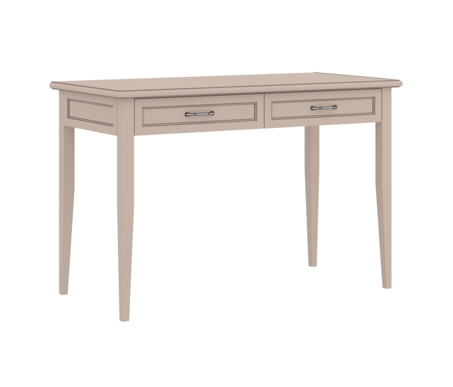 Характеристики:Туалетный стол с двумя выдвижными ящиками;Цвет: кашемир серый;На крышке по видимой части выполнен декоративный профиль;Не допускать установки тяжелых предметов на верхнюю крышку;Максимально нагрузка на выдвижной ящик — не более 5-7 кг (не класть тяжелые предметы, которые могут повредить и выдавить дно).Материалы:Стол выполнен из ЛДСП толщиной 16 и 22 мм класса эмиссии Е1;Каркас ящиков выполнен из ящичного профиля;Крепежная фурнитура и механизмы ведущих производителей (Titus, Hettich);В выдвижных ящиках используется система скрытых направляющих Quadro (Hettich, Германия) с функцией демпфирования. Это позволяет легко и почти бесшумно выдвигать-задвигать ящики, а также обеспечивает надежную фиксацию ящика и гарантирует длительный срок службы даже при высокой нагрузке.