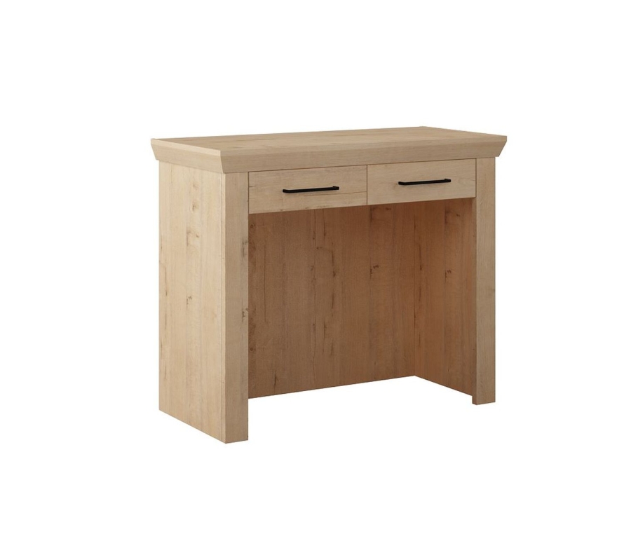 Характеристики:Туалетный стол с двумя ящиками;Цвет корпуса: дуб бунратти;Цвет дна ящиков: черный графит;Цвет ручек: железо античное черное;Максимальная нагрузка в ящик — не более 6 кг;Необходимо крепить стол к стене во избежание опрокидывания.Материалы:Корпус: ламинированная плита ДСП толщиной 16 и 22 мм класса эмиссии Е1;Фасады ящиков: ЛДСП 22 мм;Для облицовывания кромок деталей используется высококачественный материал от ключевых производителей;Ручки — металлические;В выдвижных ящиках используются направляющие скрытого монтажа со встроенным доводчиком. Это позволяет легко и почти бесшумно выдвигать-задвигать ящики, а также обеспечивает надежную фиксацию ящика и гарантирует длительный срок службы даже при высокой нагрузке.