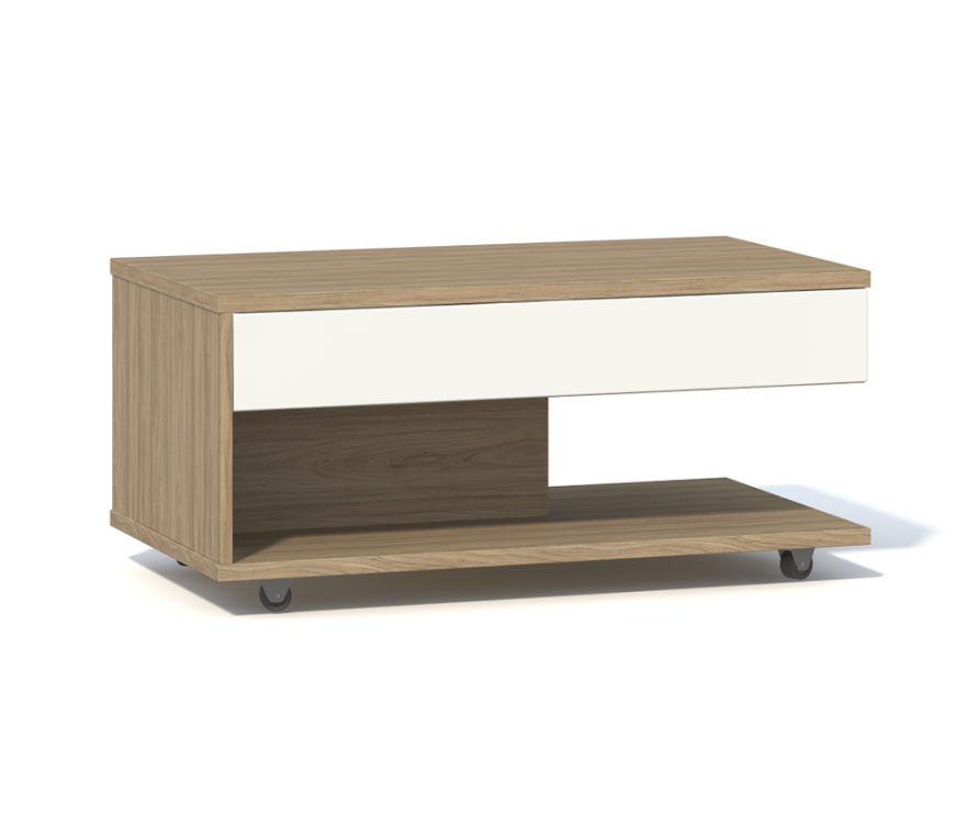 Характеристики:Стол журнальный на прямоходных колесных опорах;В верхней части — отделение с выдвижным ящиком (ящик выдвигается только в одну сторону — с другой стороны «фальшпанель»);Цвет корпуса: швейцарский вяз;Цвет фасада ящика: светлый лен.Материалы:Корпус: ЛДСП;Фасад выдвижного ящика: МДФ в пленке ПВХ;В выдвижном ящике используются направляющие скрытого монтажа со встроенным доводчиком.