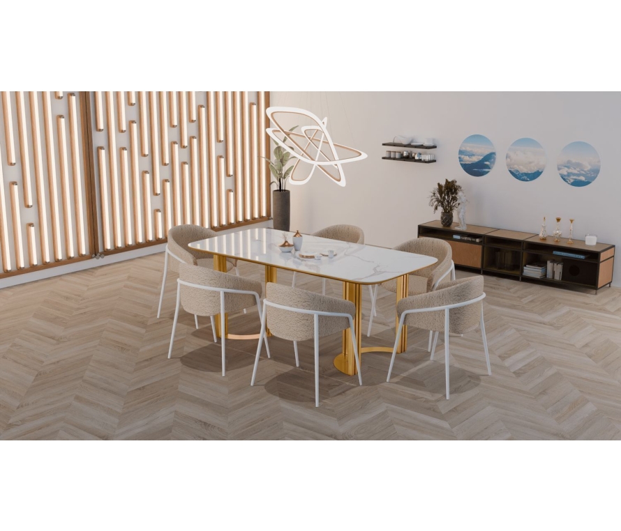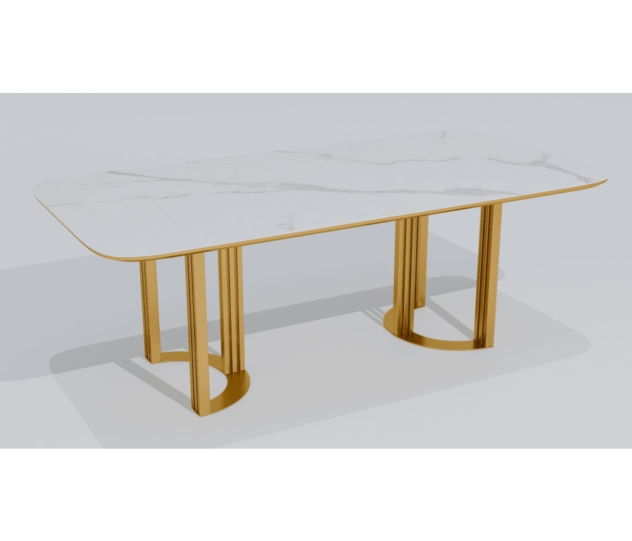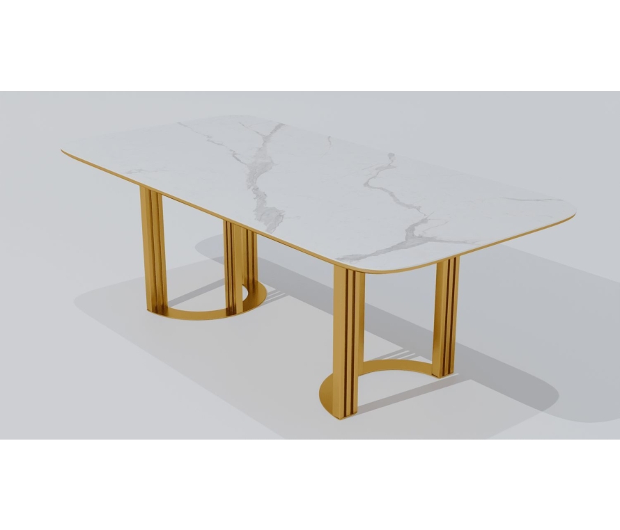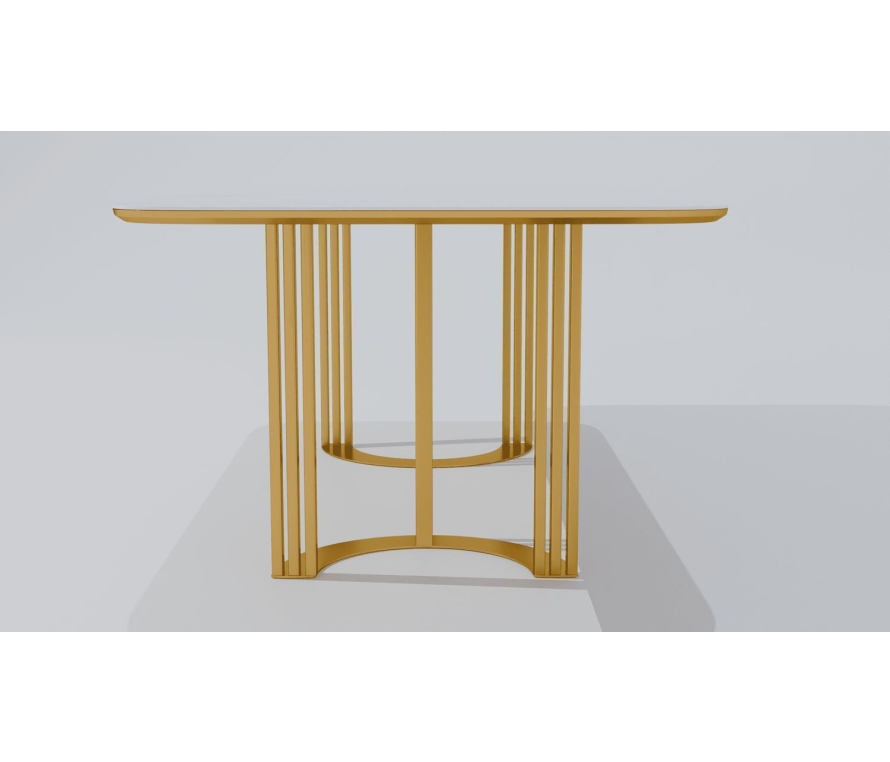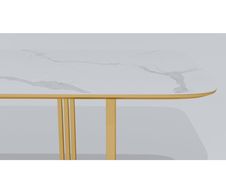 Дополнительно: Нераскладной столешница мдф 19 мм + керамика 6мм, опора металлическая, углы столешницы скруглены R20 мм. Цвет подстолья золото матовое, низ столешницы пвх 0,3мм золотой