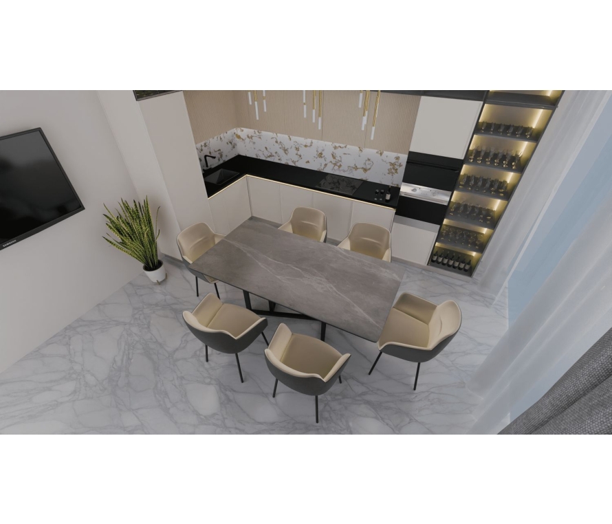 Дополнительно: Нераскладной, столешница мдф 19 мм + керамика 6мм, опора сталь профиль 60*30, толщина металла 1,5 мм, углы столешницы скруглены R20 мм.