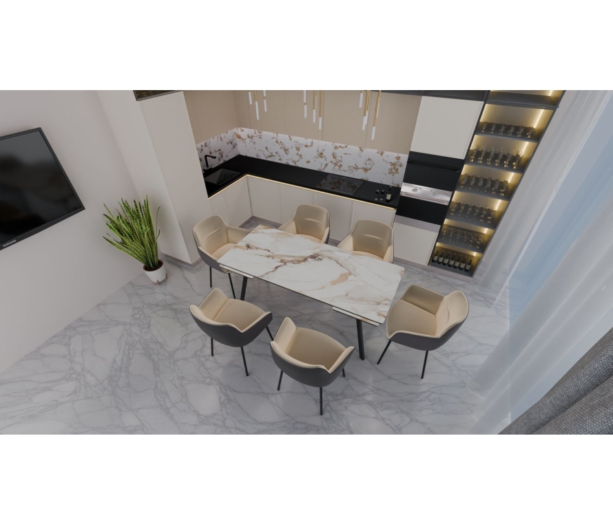 Стол Тоскана - одна из самых популярных и удобных моделей на данный момент. Широкая столешница 92 см и прямоугольная форма стола позволяет разместить на нем много посуды и продуктов, а возможность раскладывания стола до 2000 мм позволяет увеличить его размер для большого количества гостей, полноценно сервировать стол и располагаться друг на против друга с комфортом. Керамическая столешница не боится высоких температур, царапин и влаги, что делает ее легкой в уходе и подходящей для использования в кухне или столовой. Ножки и каркас стола из металла обеспечивают прочность и стабильность конструкции, что делает стол устойчивым к вибрациям и позволяет ему долго сохранять свою форму и внешний вид. Дополнительно: Выкрас золото +2.870 руб. Выкрас графит, капучино, шоколад, слоновая кость +2.410 руб.