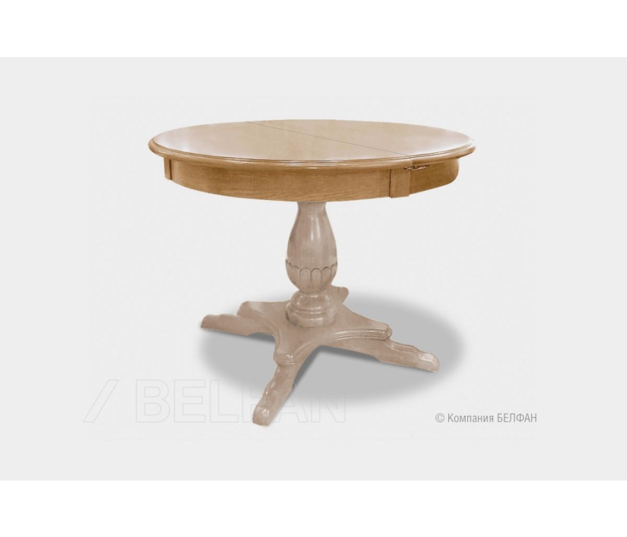 Раскладной круглый обеденный стол «Оливия» из массива и шпона ольхи. Благодаря уникальному сочетанию цветов, стол выглядит ярко и индивидуально.