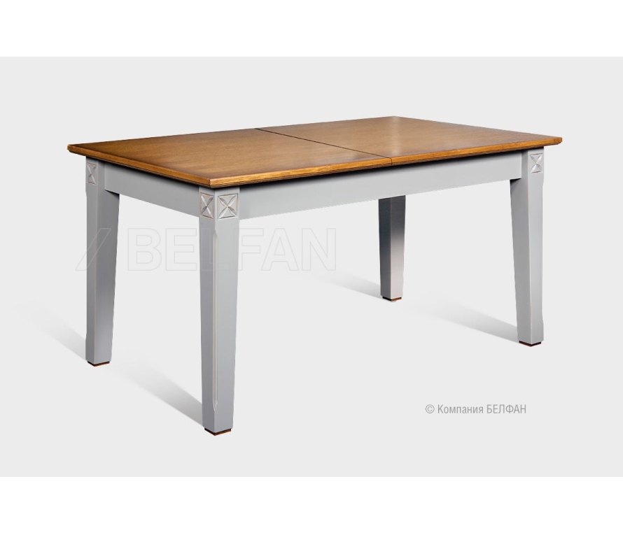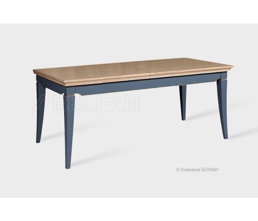 Раскладной обеденный стол «Стюарт» в классическом стиле для Вашей гостиной. Особенности раскладного обеденного стола «Стюарт»: ? Современный классический дизайн. ? Высокие резные ножки изделия с позолоченной фрезеровкой. ? Сочетание глубоких матовых эмалевых крашений с глянцевой столешницей оттенка натурального дуба. ? В покрытии изделия используются краски и лаки на водной основе, что свидетельствует о безопасности и соответствует высоким стандартам качества. ? Ножки изделия изготовлены из массива дуба. ? Столешница и царговый пояс изделия изготовлены из шпонированного дубом МДФ класса безопасности Е1