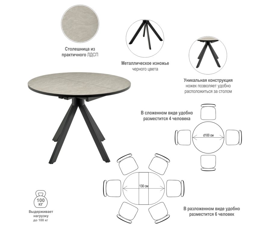 Группа товаров: Стол Rudolf круглый раскладной 100-130