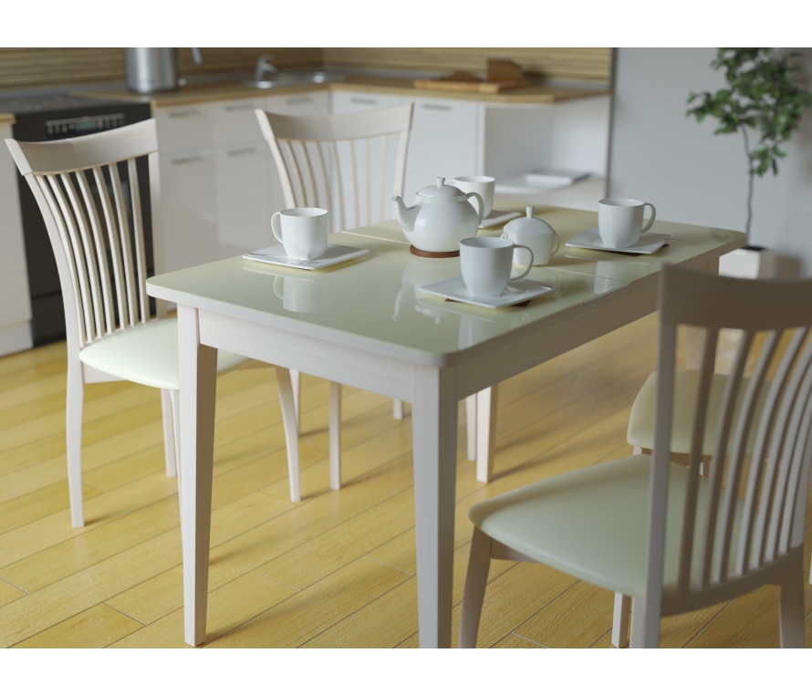 Стол обеденный KENNER 1100 С цвет белый, столешница - стекло белое, сатин. Стильные, дизайнерские столы для дома. Фабрика "Кеннер". Гарантия качества. Быстрая доставка по РФ. Самая функциональная форма стола из возможных. Стол можно поставить вплотную к стене по любому краю, царговый пояс позволяет поставить 2 стули шириной до 47см, широкая вставка со стеклом в цвет столешницы поможет вам удобно разместить еще 2 гостей. Компактный и очень функциональный стол, идеален для использования как на небольшой кухне, так и в качестве уютной обеденной зоны в гостиной. Столешница из стекла надежно защищает стол от влаги и горячего. Синхронный механизм раскладки позволяет легко раздвинуть стол одной рукой любому члену семьи. Вставка с материалом столешницы осталяет стол монолитным в разложенном состоянии. Стол максимально устойчив благодаря особому, усиленному креплению опор и регулировочным винтам. Столешница премиум-класса Стекло является оптимальным на сегодняшний день материалом для столешницы по соотношению цена-качество. КЕННЕР применяет дорогое, просветленное стекло optiwhite которое передает чистый, аркий цвет без зеленого бутылочного оттенка. Стекло надежно крепится к подложке из ЛДСП на герметик, распределенный по всей поверхности столешницы. Высокая надежность материалов Устойчивость - одна из самых важных характеристик стола. Благодаря толстым опорам из массива бука, мощным угловым стяжкам и 2 шпилькам на каждой опоре - стол стоит монолитно на любой, даже неровной поверхности. Для дополнительной устойчивости используются регулировочные винты на концах опор.
