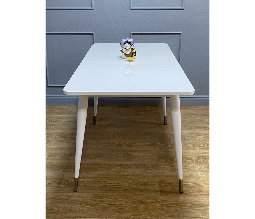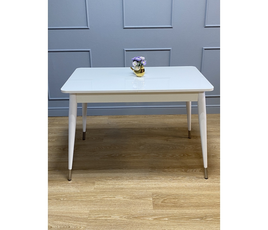 Стол обеденный KENNER 1100 K цвет белый столешница - стекло белое, глянец. Стильные, дизайнерские столы для дома. Фабрика "Кеннер". Гарантия качества. Быстрая доставка по РФ. Самая функциональная форма стола из возможных. Стол можно поставить вплотную к стене по любому краю, царговый пояс позволяет поставить 2 стула шириной до 47 см, широкая вставка со стеклом в цвет столешницы поможет вам удобно разместить еще 2-х гостей